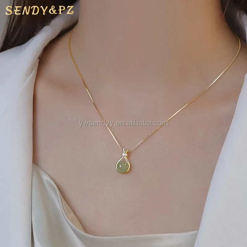 Не тускнеет драгоценные камни антикварные ювелирные изделия ожерелья 18K позолота нержавеющая сталь настоящий нефрит ожерелье драгоценный камень колье для женщин и девочек