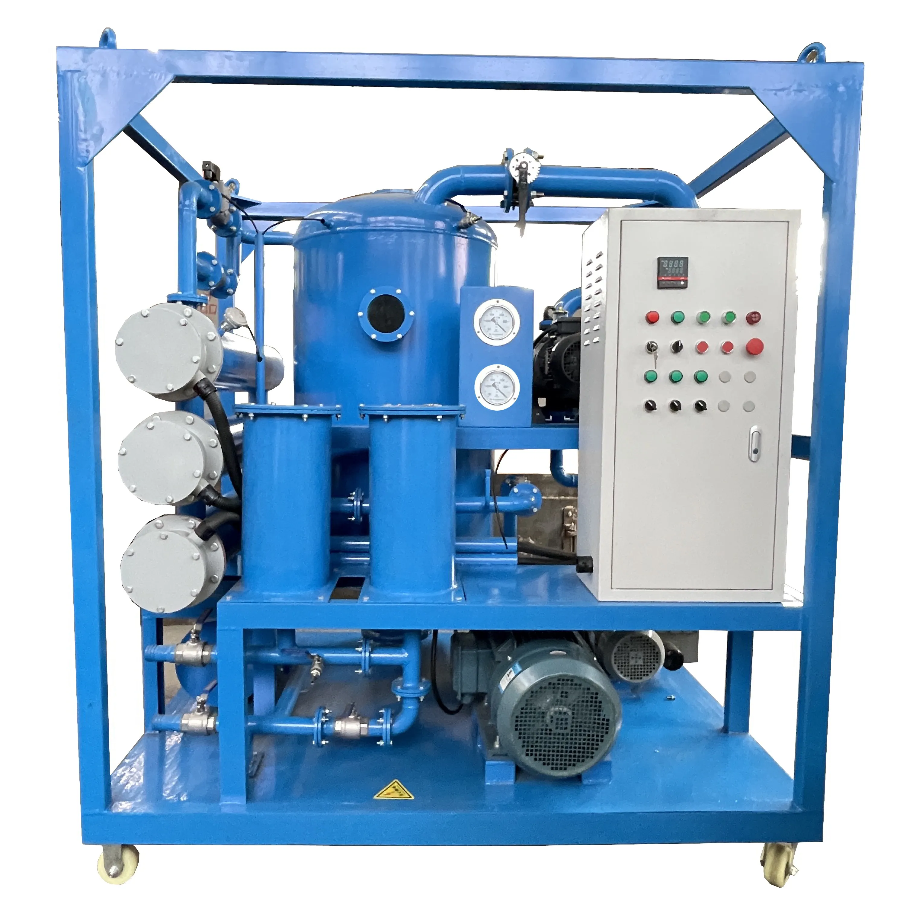 The main function of DZL Series of signal and double stage high-efficient vacuum oil purifier is to remove free and dissolved water, gases, and mechanical impurities from insulating oils so as to ensure its purity and improve its insulation property. It is suitable for the application to oil treatment 500KV super-voltage transforming equipment and 220KV transformers. It is also suitable for the treatment of capacitor oil, transformer oil and freezer oil.