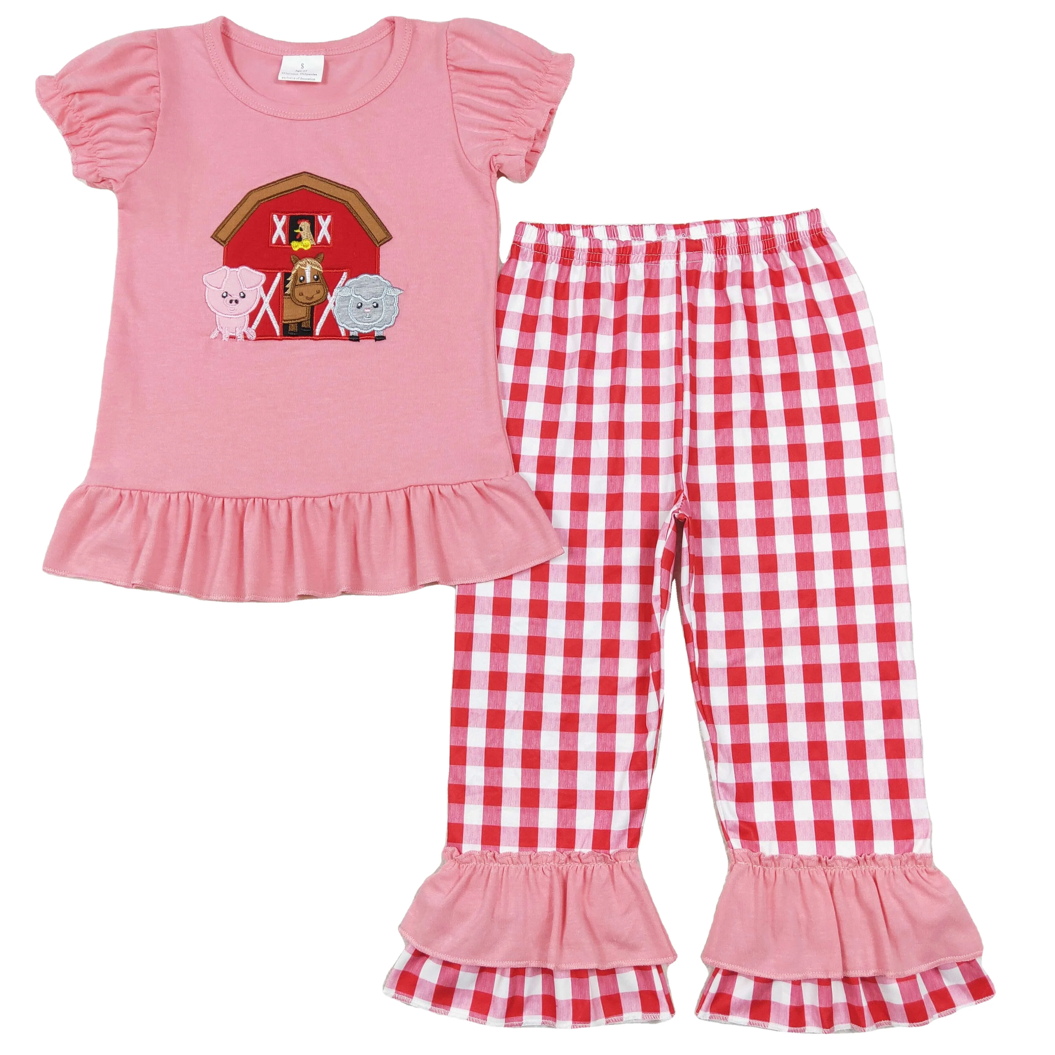 Одежда для маленьких девочек и мальчиков красная фермерская корова Одинаковая одежда детей оптовая продажа Высококачественная летняя комплекты с коротким рукавом