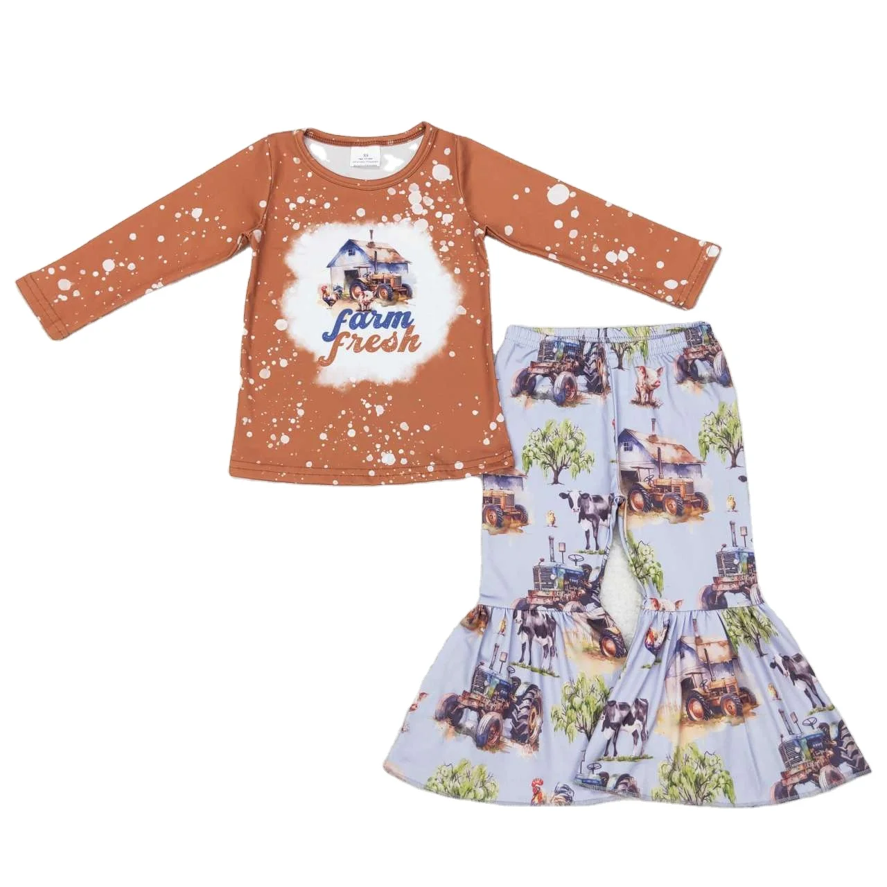 WHS128 Детские наряды на ферму бутиковая Одежда для девочек платья с длинным рукавом детские брюки детская одежда