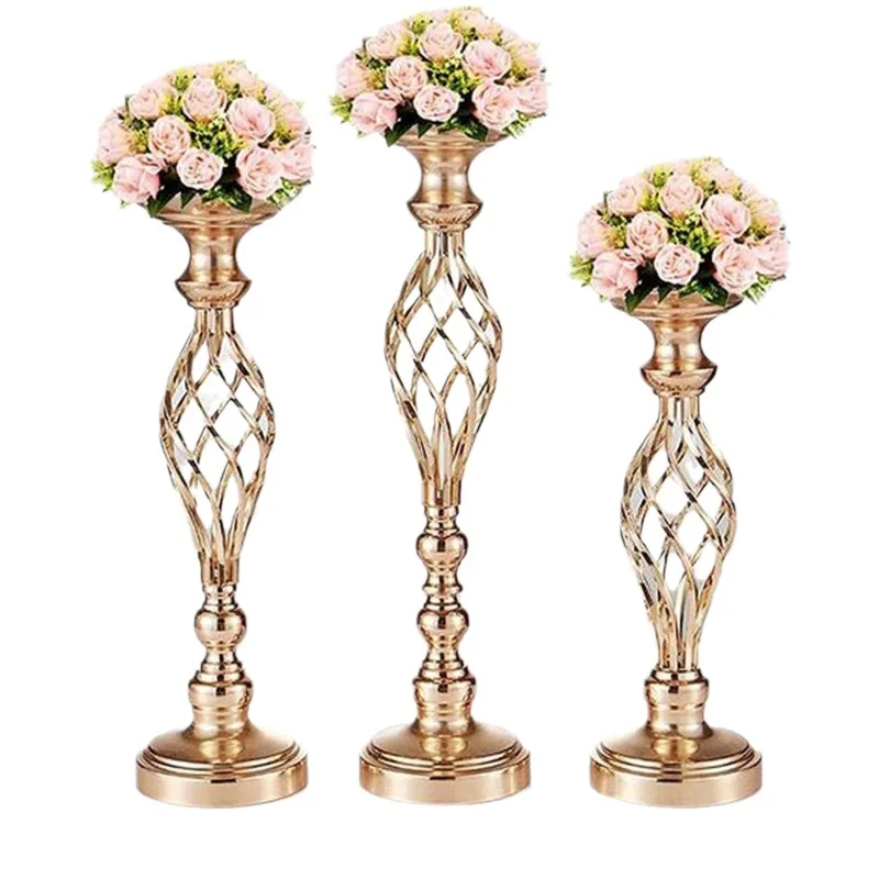 Свадебная Центральная Золотая настольная подставка для цветов, металлическая подставка для цветов, ваза для украшения