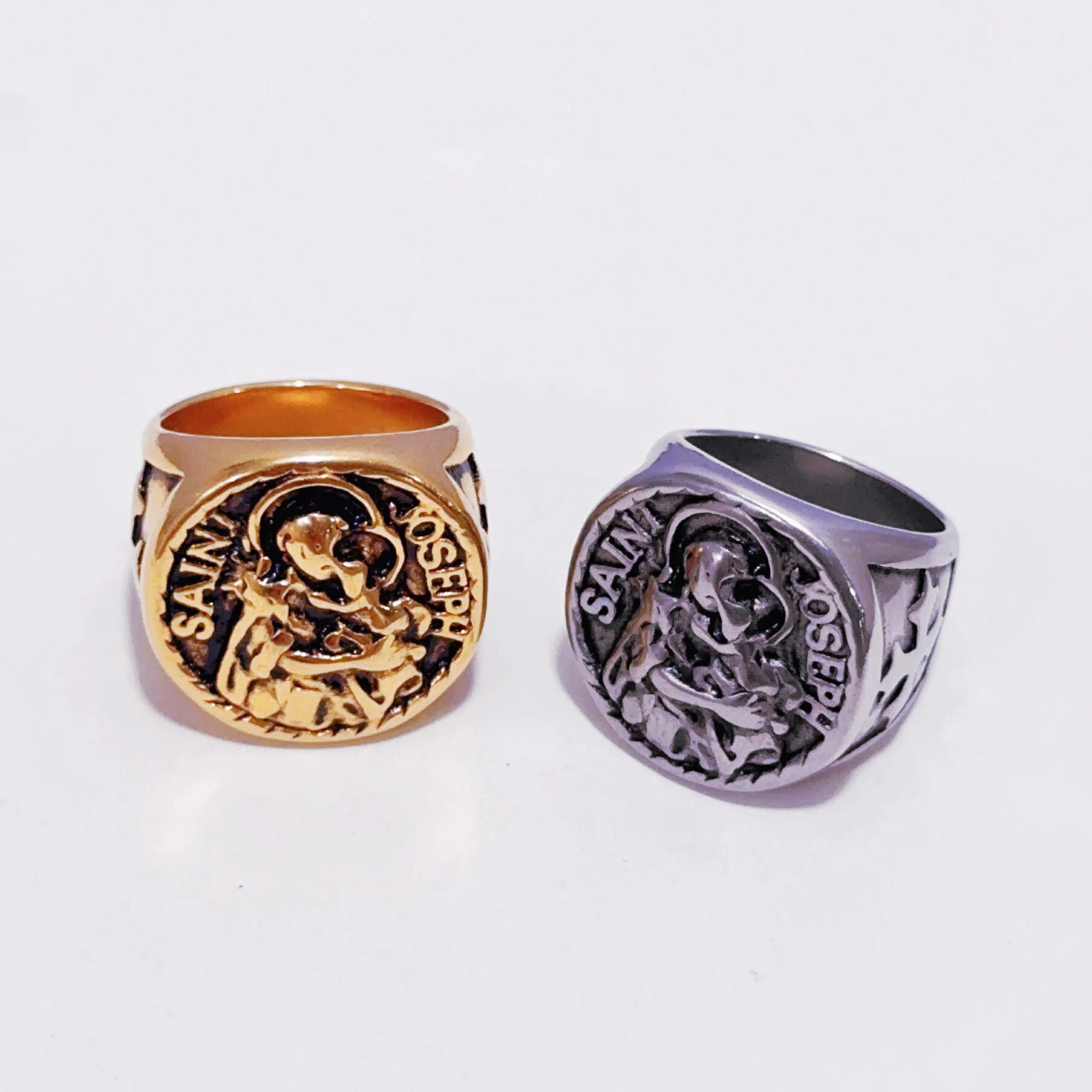 Мужское позолоченное кольцо из нержавеющей стали католический Иисус святой Иосиф экзорцизм с крестом на заказ ювелирные изделия 1,80-2,55 $