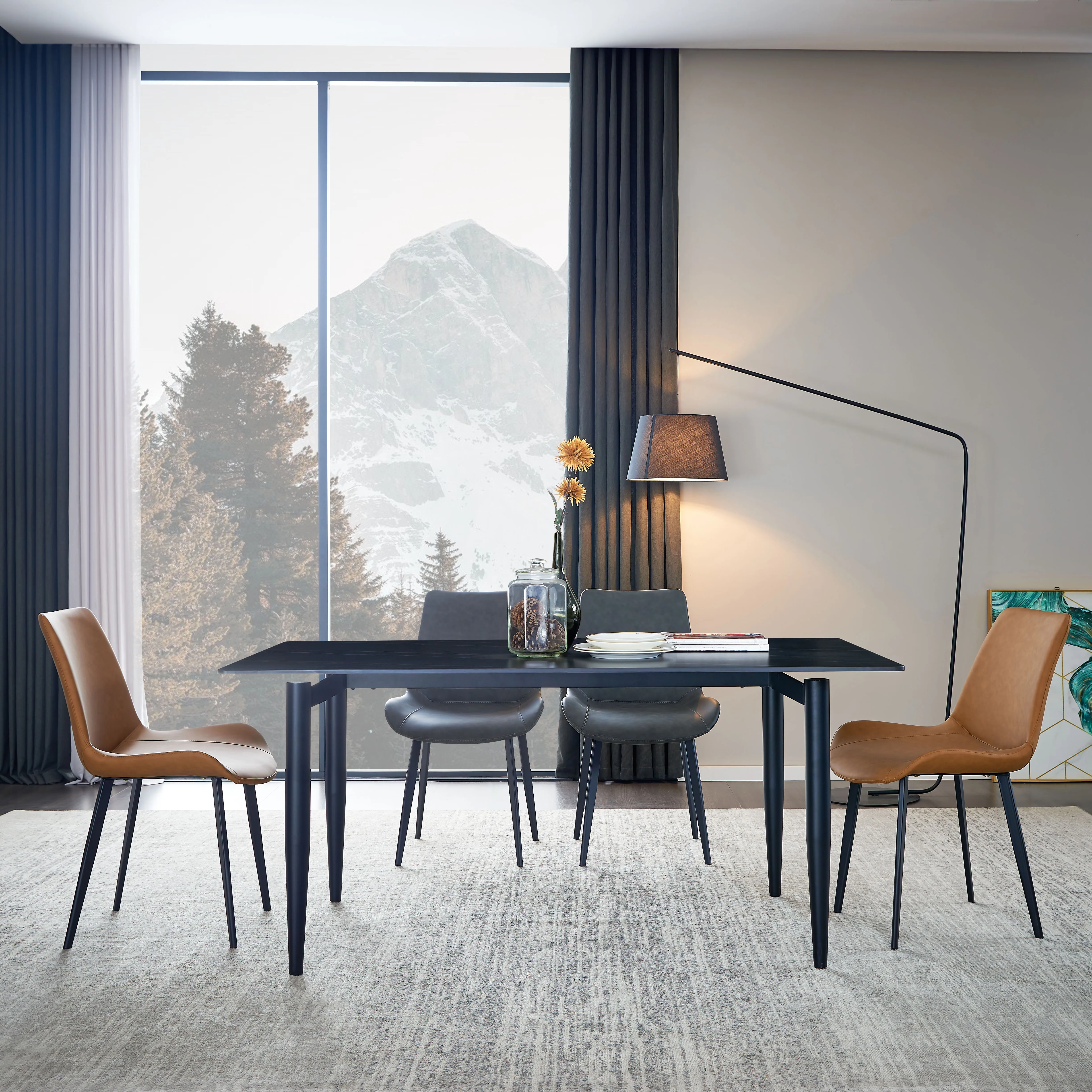Деревенский деревянный обеденный стол на 6 стульев с металлическими стульями идеально подходит для современной столовой