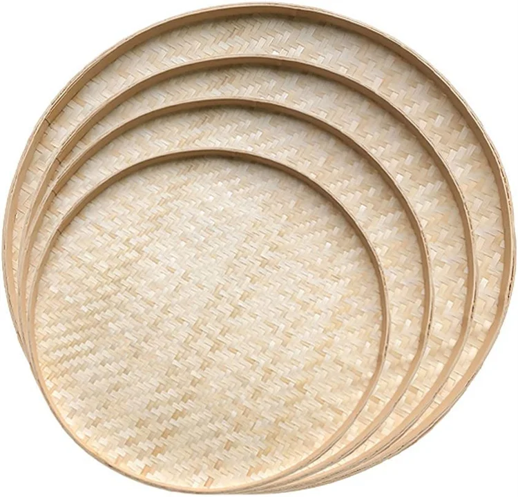 Плетеный бамбуковый сервировочный поднос круглые мелкие плетеные Ротанговые настенные корзины Декор кухонный держатель для хранения фруктов и