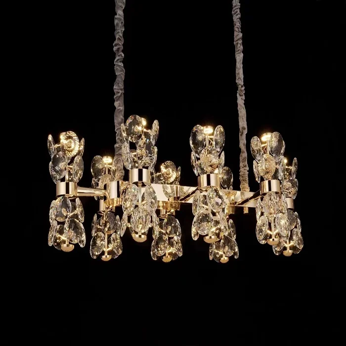 Китайский 2023 новый популярный роскошный круглый прямоугольный Золотой хрустальный светильник для гостиной столовой