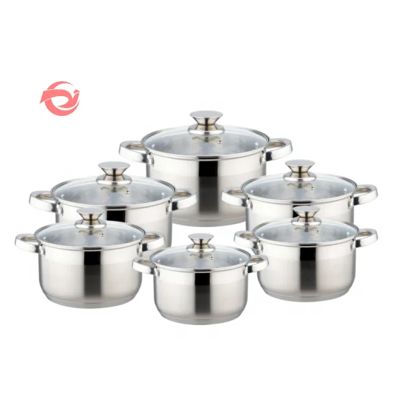 Высококачественная безопасная для посудомоечной машины 12 шт. Заводская кастрюля кухни со стеклянной крышкой экологически чистые наборы посуды из нержавеющей стали