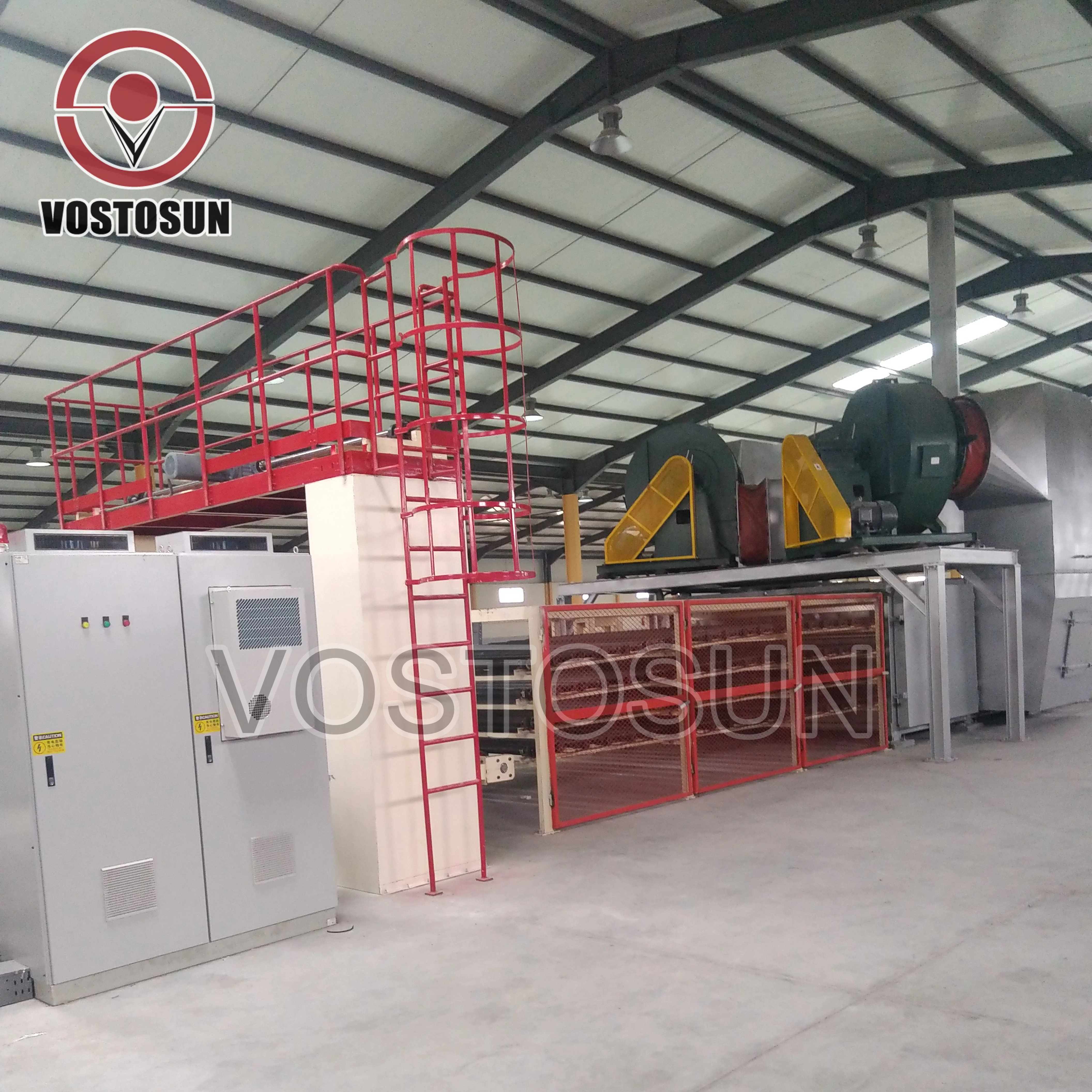 1250Ⅰ type gypsum ceiling production line is a new generation of ceiling production equipment. Adopting PLC intelligent controlling system, by chain and belt transmission, double-sided coating, cutting, sealing, packing and stacking could be done automatically . It has advanced technology, compact structure, reliable operation, nice shape. The finished product is interior decoration materials with large demand currently. Gypsum ceiling tiles are fireproof, waterproof, light, soundproof and have various styles, concise appearance and convenient installation. it is suitable for density board, MDF, fire prevention board and gypsum board’s coating jobs and has gradually get market and customer acceptance