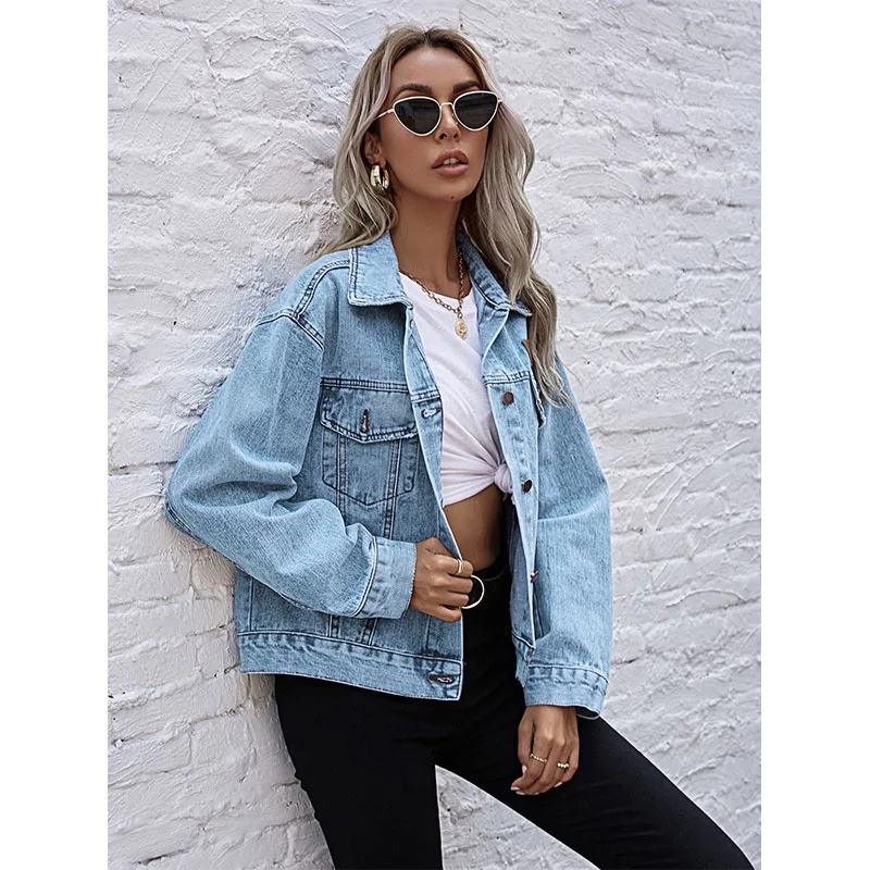 Оптовая продажа женская синяя джинсовая куртка с логотипом на заказ Женская рваная короткая
