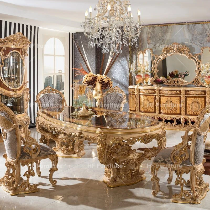 Роскошный французский античный классический стиль, деревянный обеденный стол на 8 персон, стулья, столовая, набор мебели