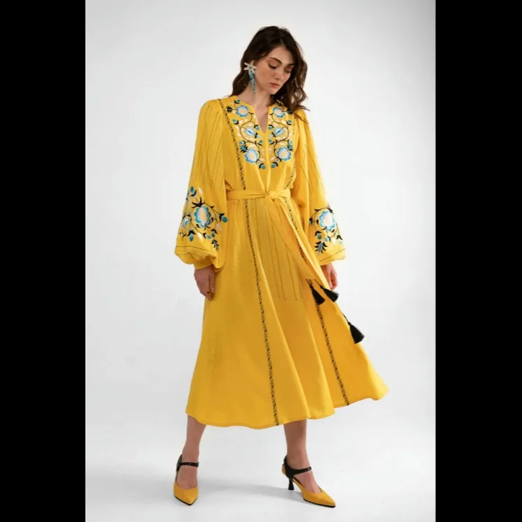 Дизайнерские вышитые платья на заказ элегантная праздничная одежда с V-образным вырезом и поясом оптовая продажа дешевая цена 10,00-20,00 $