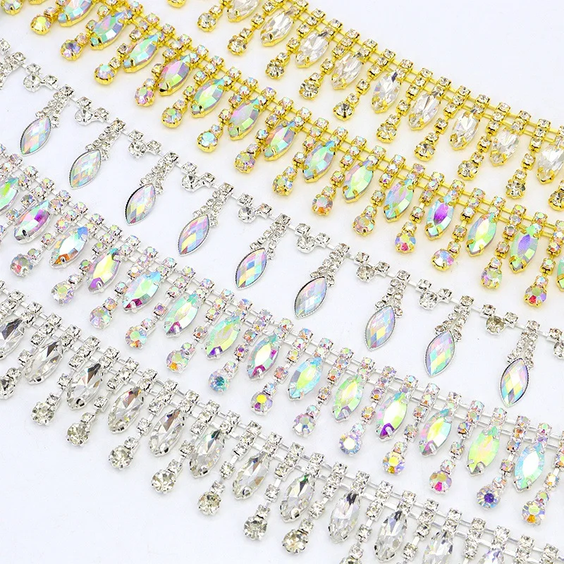 Настраиваемая Роскошная цепочка из горного хрусталя ручной работы Золотая пластиковая обшивка Круглая Плоская отделка для одежды своими руками
