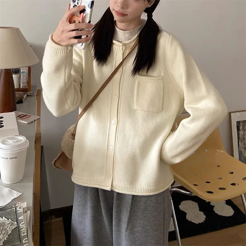 Бр4765 2024 осенне-зимний винтажный контрастный вязаный кардиган женский дизайн чувственная ниша мягкая восковая куртка