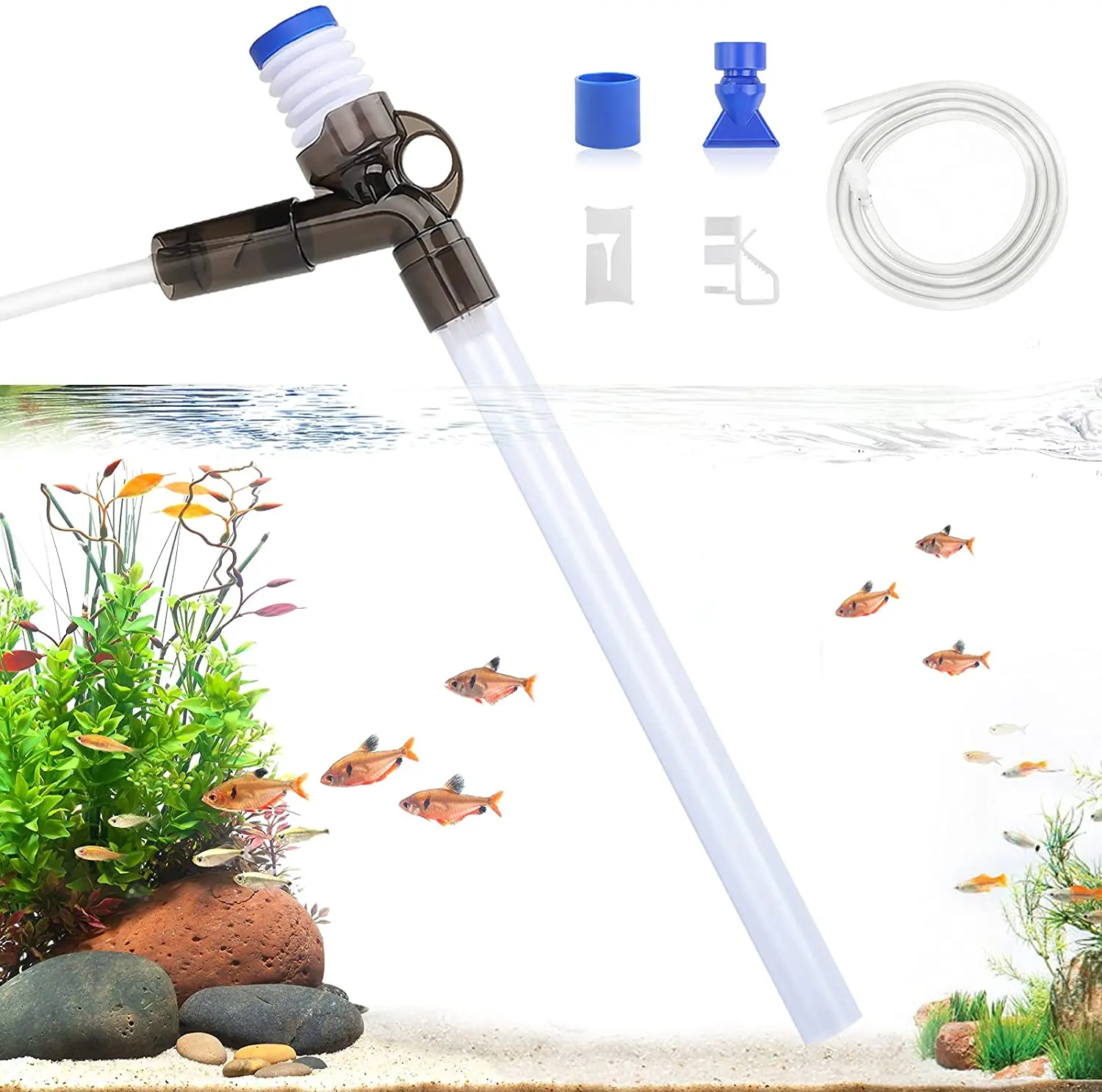 Аквариумный гравийный очиститель воды с кнопкой давления воздуха, которая не боится мокрых рук, набор для очистки песка в аквариуме, сифон