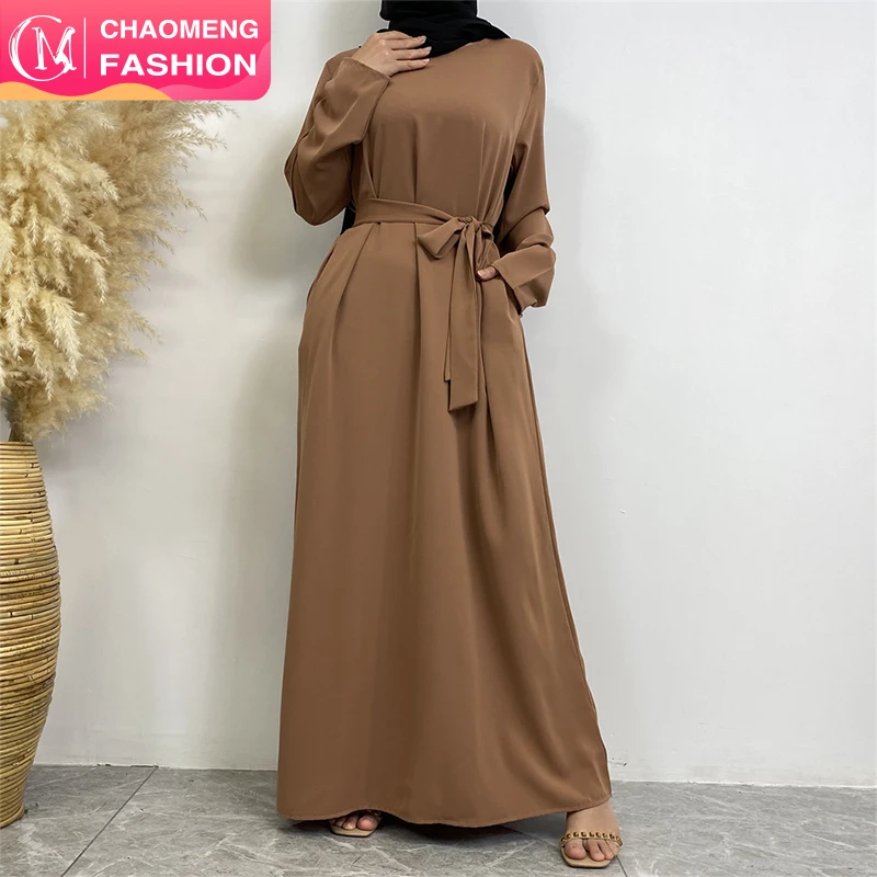 6597 # новейший популярный простой классический дизайн Маленькие рукава с боковыми карманами с задней молнией универсальное повседневное мусульманское платье