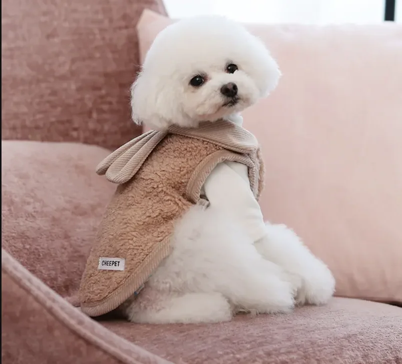 Одежда для домашних животных теплая плотная однотонная куртка одежда флисовый жилет с кроличьими ушками кошек 430,58 ₽ - 474,74 ₽