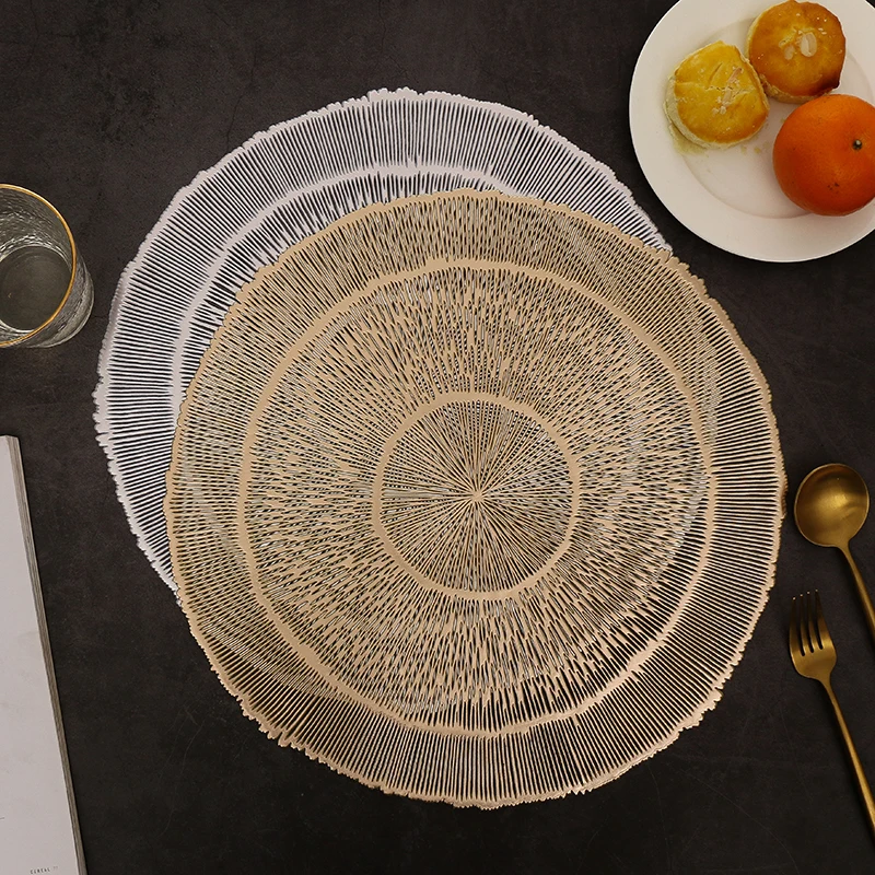 Тканые круглые коврики из ПВХ золотые серебряные бронзовые с тремя кругами полые дизайнерские для домашней свадьбы 39,32 ₽ - 44,93 ₽