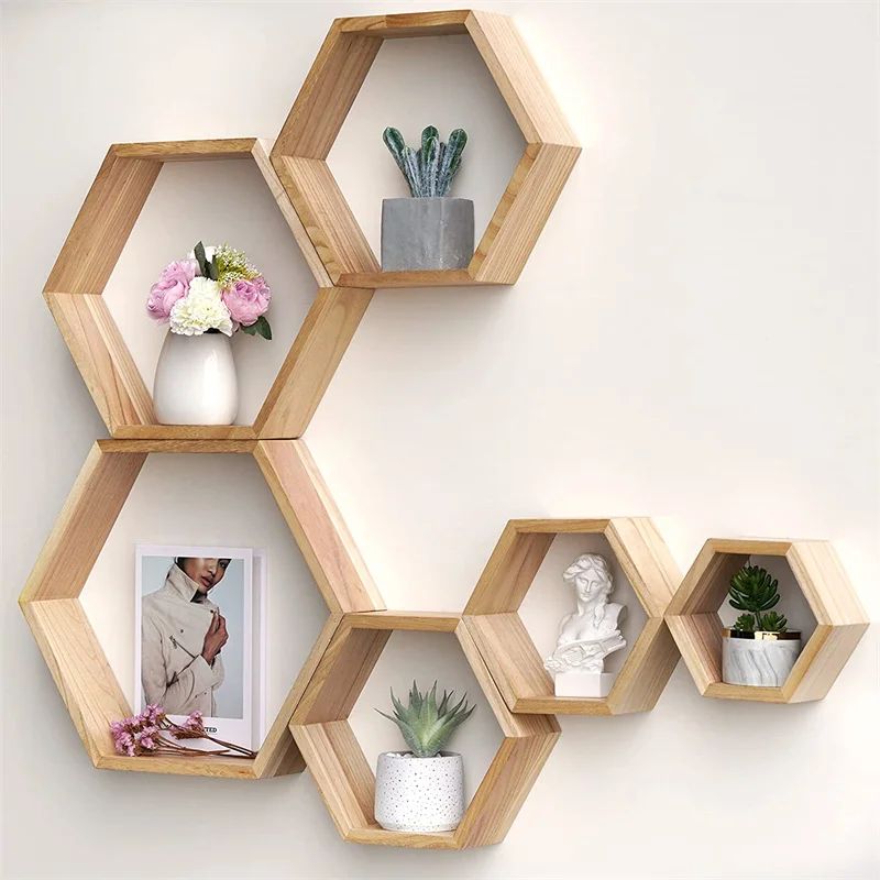 Набор из 6 деревянных шестигранных полок Натурального Коричневого Цвета деревянная настенная полка деревянные настенные полки для хранения игрушек 325,75 ₽ - 561,63 ₽