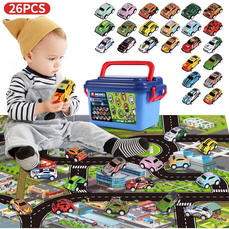 Мини-легкосплавный маленький автомобиль 30 шт. для детей 1:64 автомобиля литые под давлением металлические машинки набор игрушек с ящиком хранения мальчиков