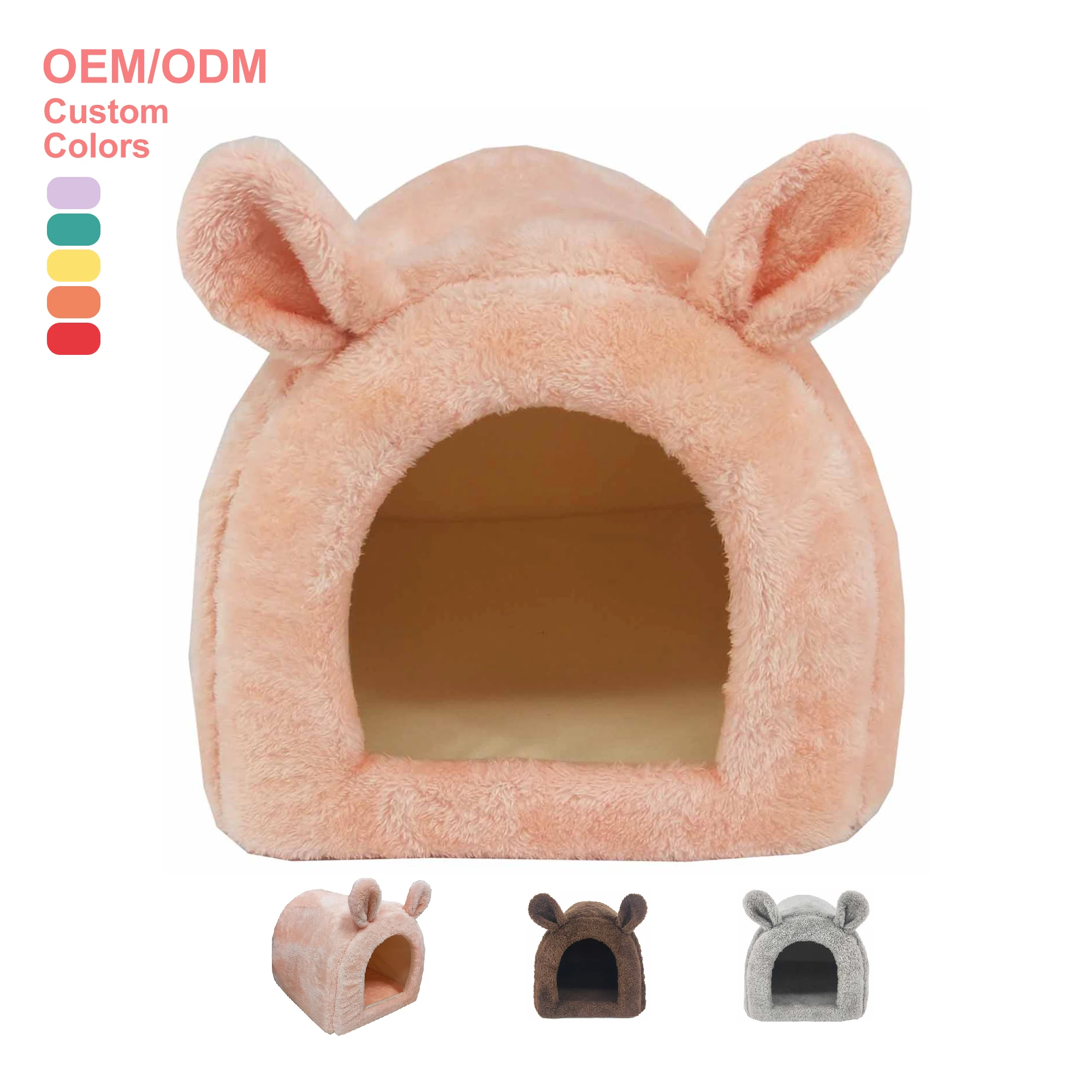 Оптовая продажа плюшевая пена милый однотонный дизайн устойчивая спальная кровать для домашних животных кошек пещера