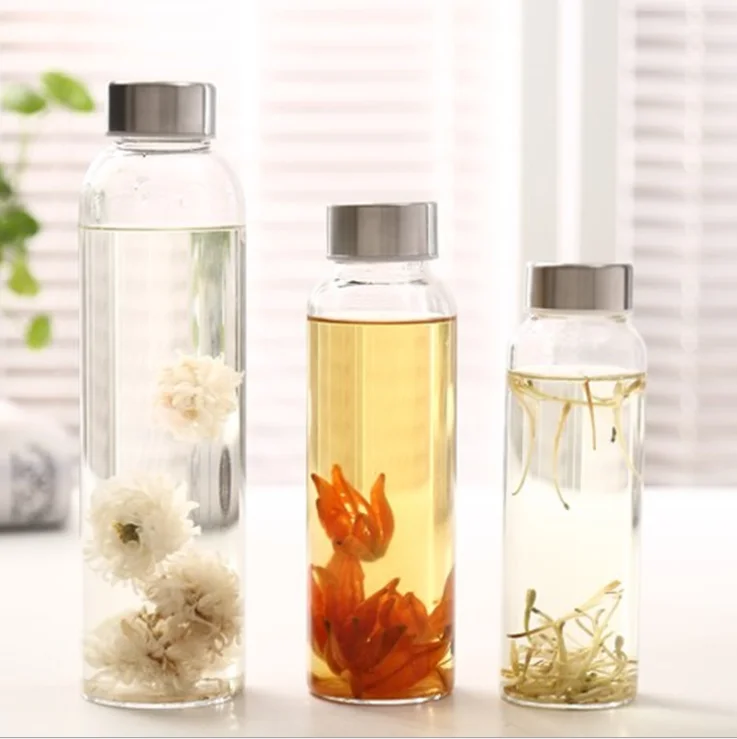 Горячая Распродажа металлическая крышка прозрачная стильная бутылка для воды voss логотип с крышкой из нержавеющей стали и ручкой 300 мл 420 500