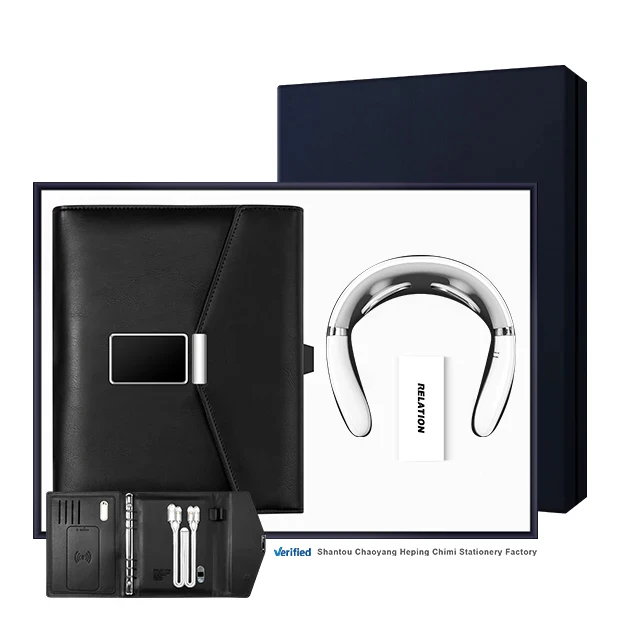 Подарочные товары 2 в 1 с индивидуальным рекламным логотипом Массажер шеи блокнот a5 беспроводной зарядкой 8000 мАч