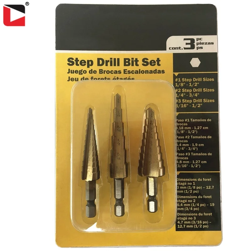 Набор ступенчатых Сверл из быстрорежущей стали с титановым покрытием 3 шт.