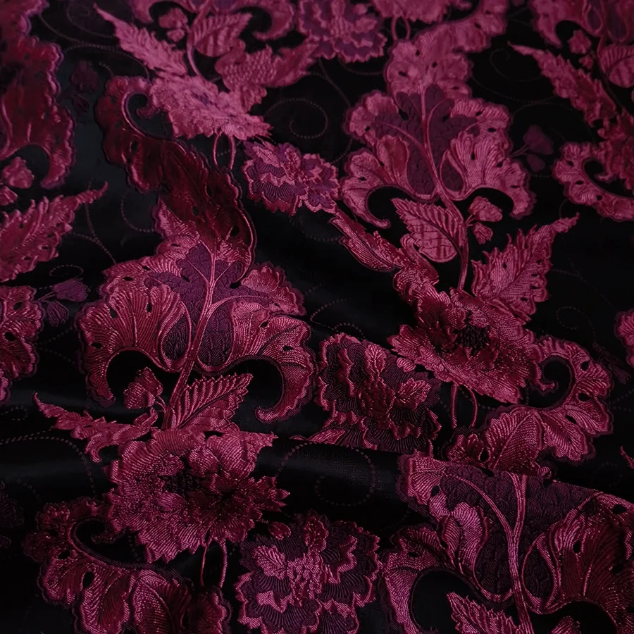 Nais Новейший китайский тисненый 3d Блестящий 100 полиэстер красивый черный красный бордовый цветок парча текстильная жаккардовая ткань