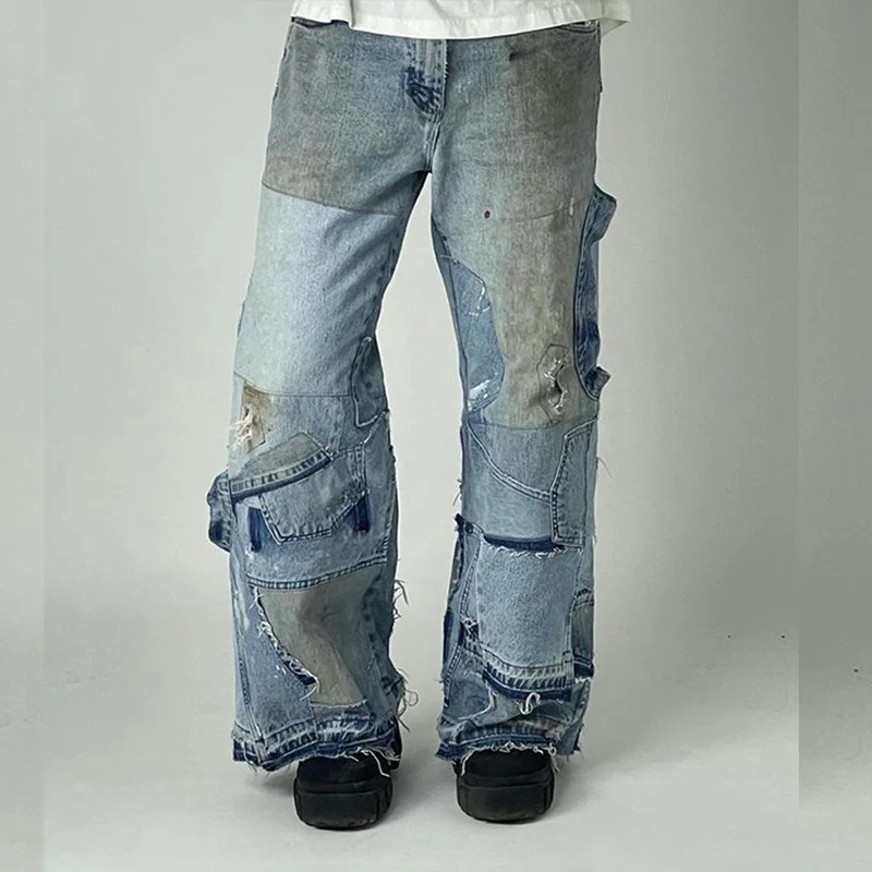 DiZNEW прямые продажи с фабрики высокое качество оптовая продажа на заказ лоскутные потертые винтажные мужские джинсы больших размеров 1 062,15 ₽ - 2 842,29 ₽