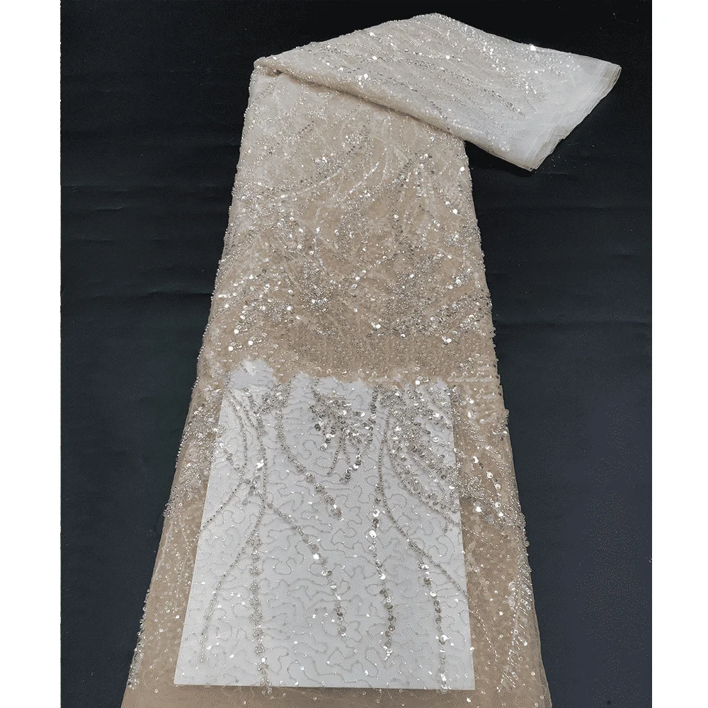 Высококачественная элегантная вышитая кружевная ткань трикотажная с блестками используемая для изготовления платья