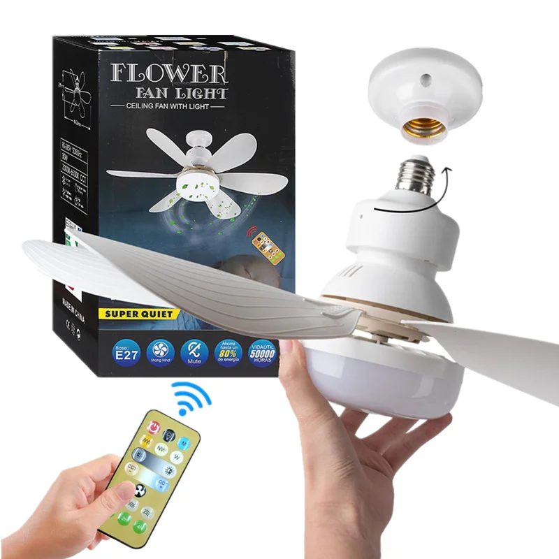 E27 Remote Control 360 Degree Rotation Fan Lamp with LED Lights Quiet Ceiling Fans for Bedroom Living Room Interior