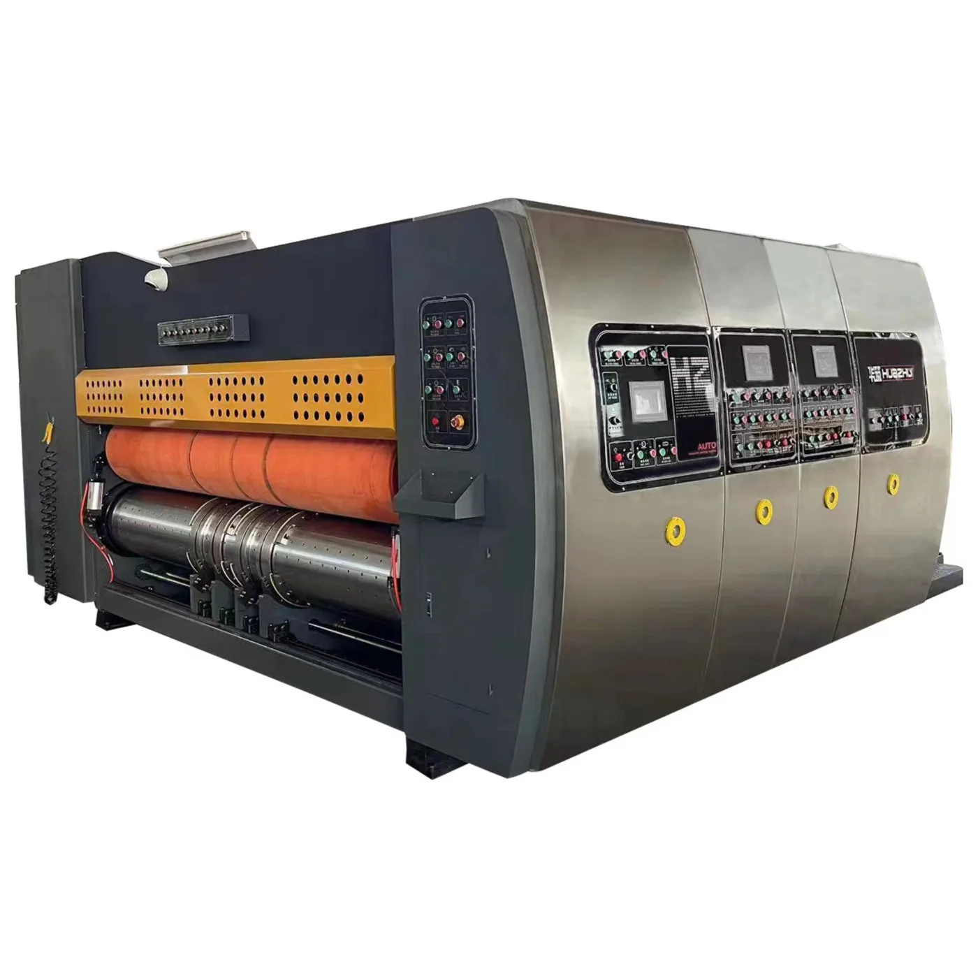 5. Operation control switch (PLC computer control)1) the control panel is equipped with a 10-inch touch screen, which can control the feeding, printing and slotting departments.