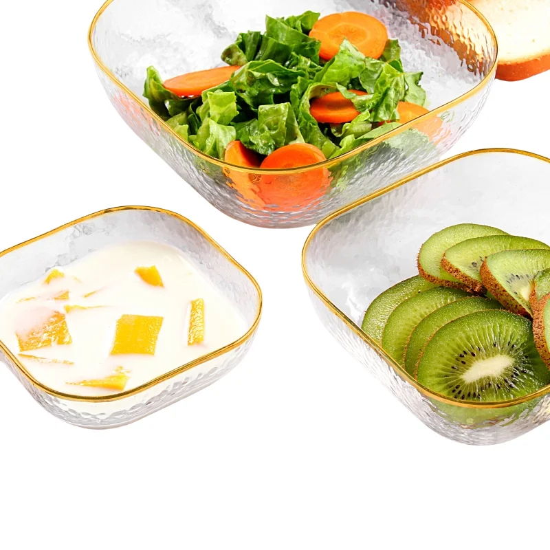 Ручной работы Золотая квадратная чаша для салата набор стеклянных чаш креативная домашняя обеденного стола