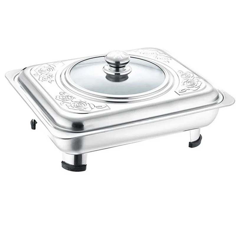 Прямоугольный поднос для подогрева еды кастрюля из нержавеющей стали намотка сервировочное блюдо плита пикника со стеклянной крышкой