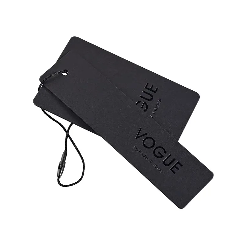 Индивидуальная Черная бумажная бирка с черным тиснением логотипа для одежды