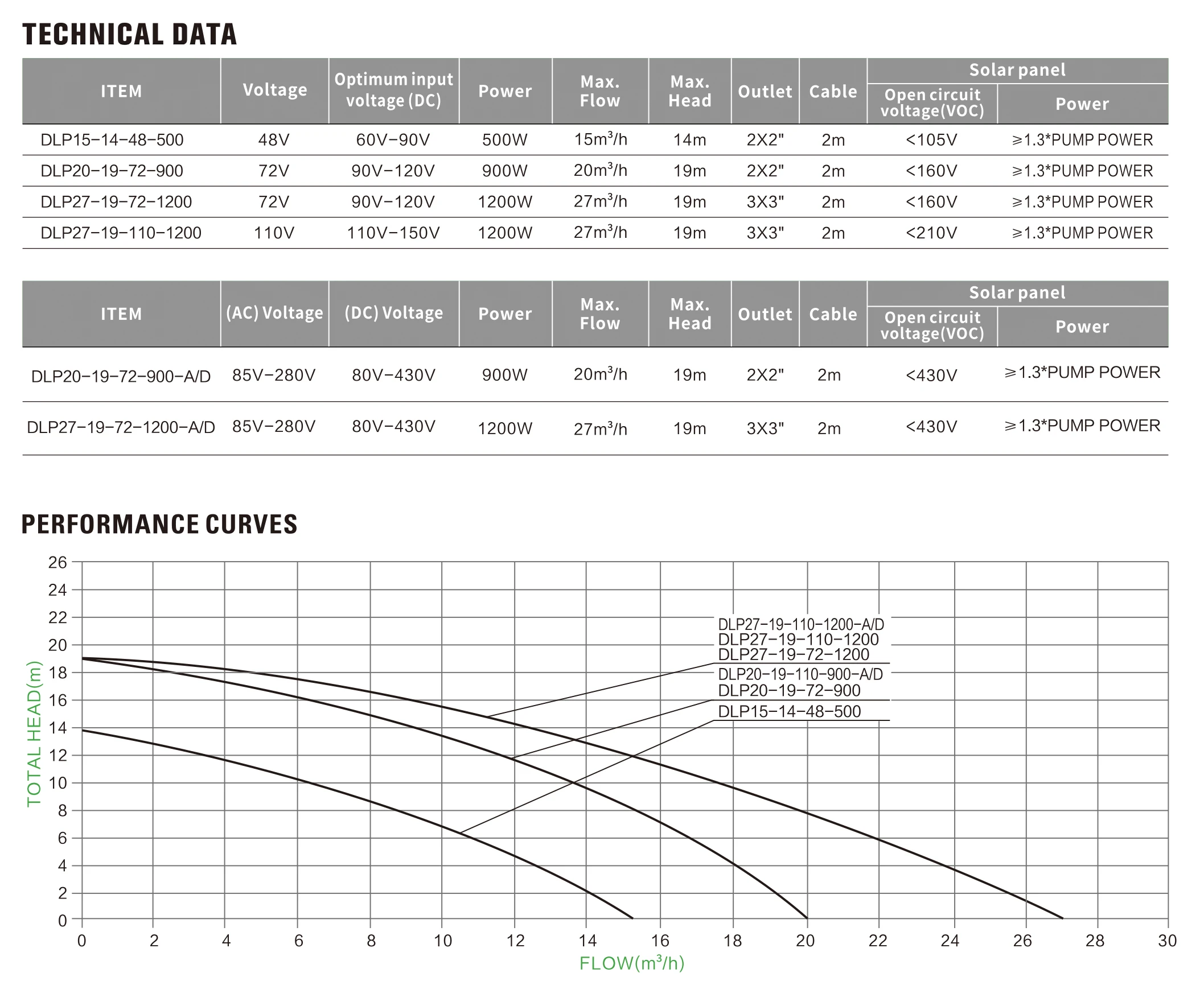 DLP27-19-72-1200 | 72V | 90V-120V | 1200W | 27m^3/h | 19m |