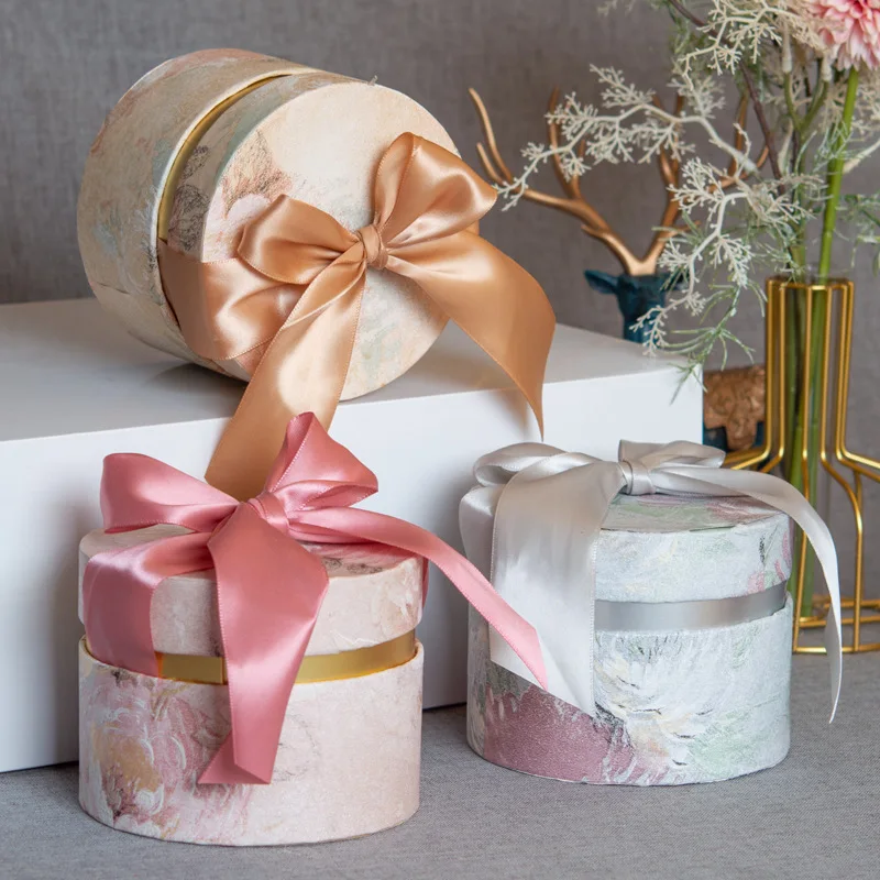 Свадебная подарочная упаковка роскошная бумажная коробка для ювелирных изделий круглое кольцо лента бант ведро конфет Подарочная оптовая продажа