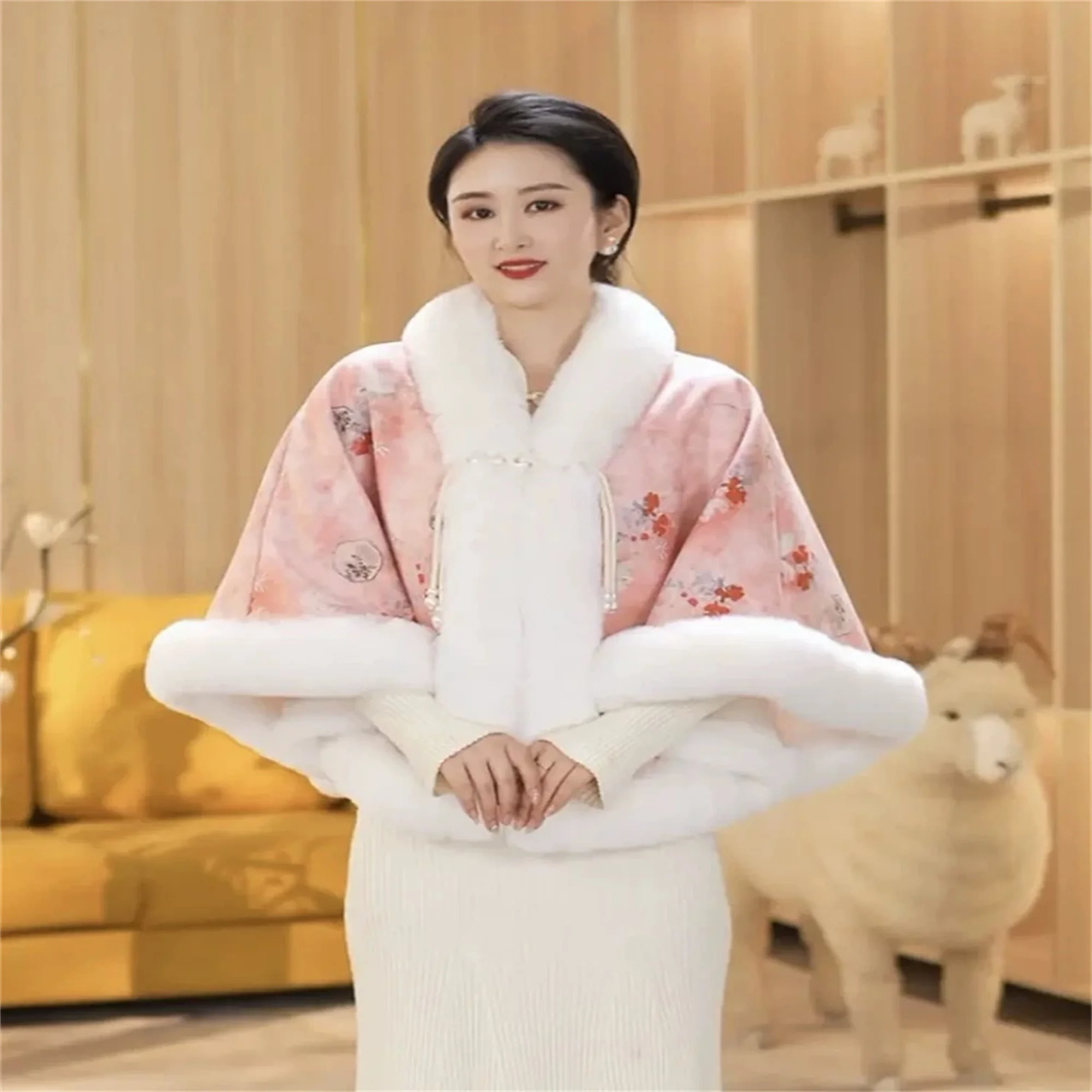 5 видов цветов 2024 женская накидка из искусственного кроличьего меха с двумя кругами зимняя свободная теплая шаль верхняя одежда кашемировая пальто