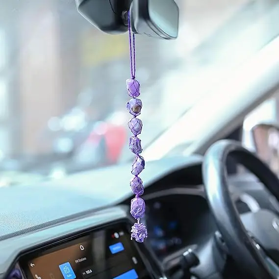 Аметист, подвесные драгоценные камни для автомобиля, украшение для исцеления, украшение для витрины, вешалка для стен с кисточками