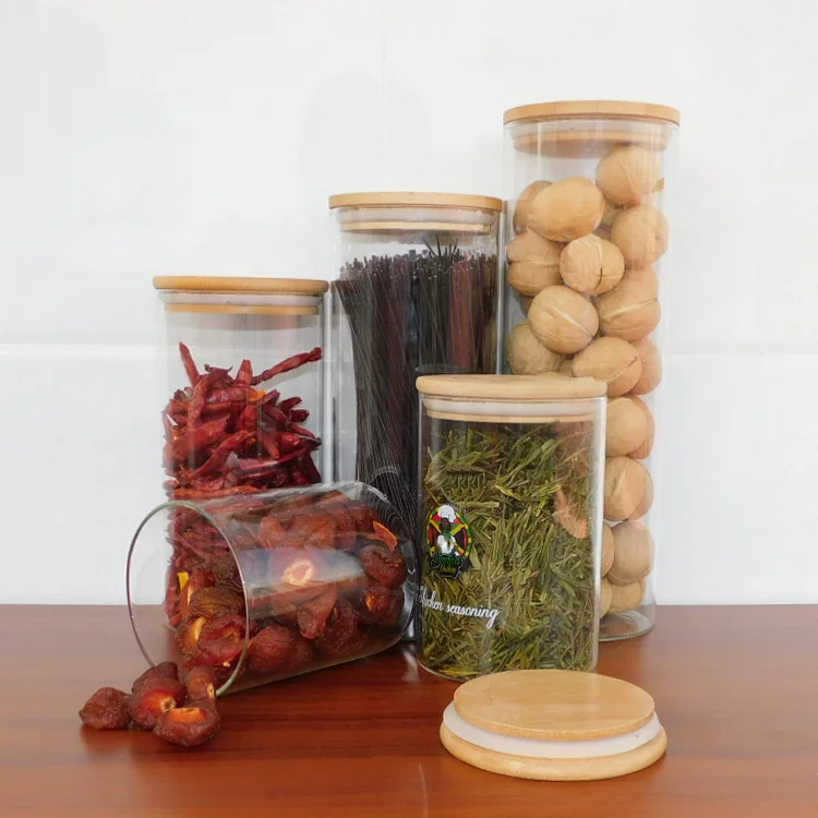 Боросиликатное стекло 4 унции оптовая продажа стеклянная банка для хранения продуктов с кольцом Бамбуковая крышка 2 термостойкая
