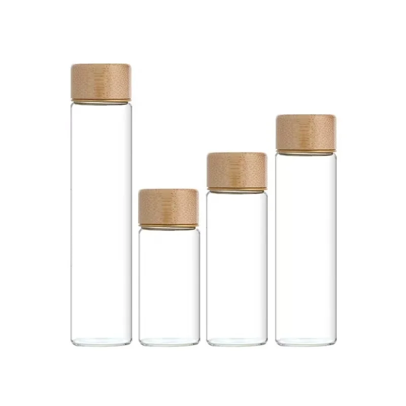 Воздухонепроницаемая герметичная Круглая Плоская пробирка из боросиликатного стекла с бамбуковой винтовой крышкой 0,05-0,07 $