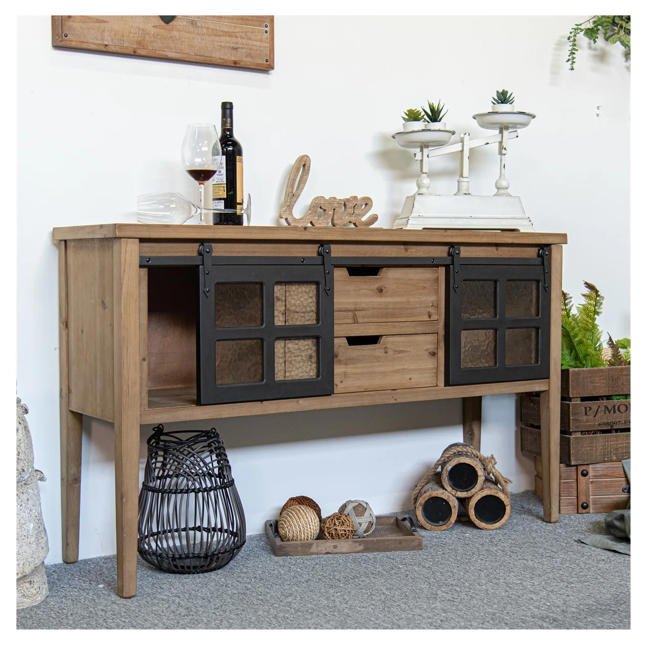 Японский Рециркулированный сосна гостиная с металлическими ножками деревянный шкаф для телевизора 2 дверями и стеклянными полками 5 616,37 ₽