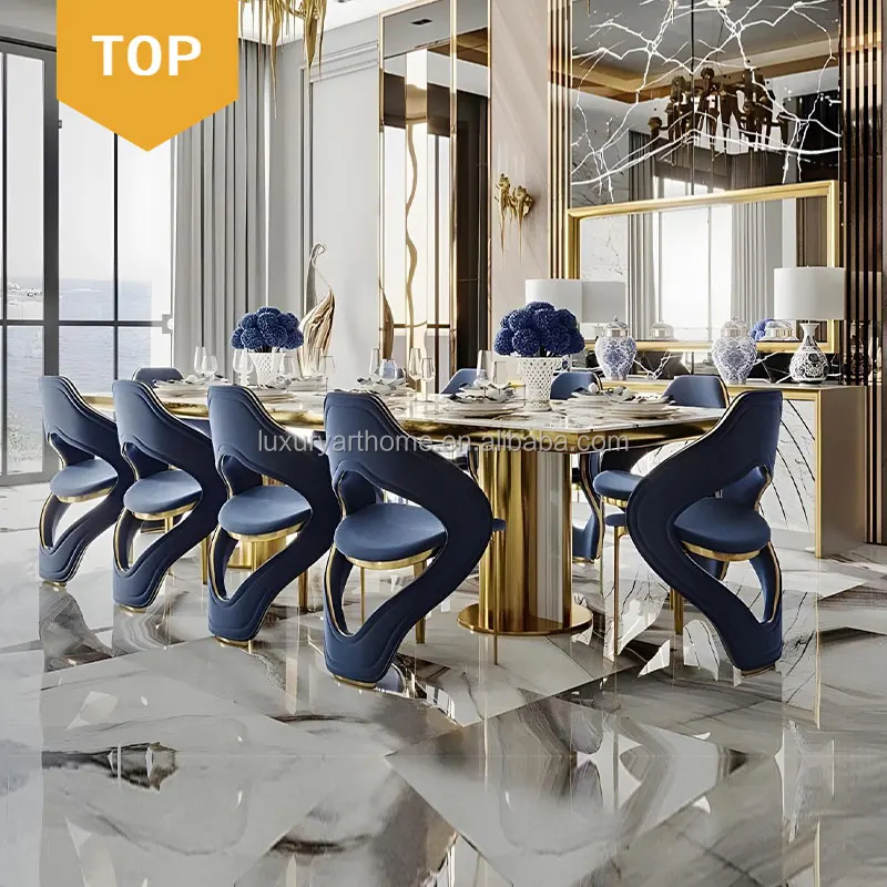 Итальянская дизайнерская роскошная мебель для столовой высокого класса вилла столовая большая 8 стульев черная мраморная столешница обеденный стол 375 188,22 ₽ - 417 478,22 ₽