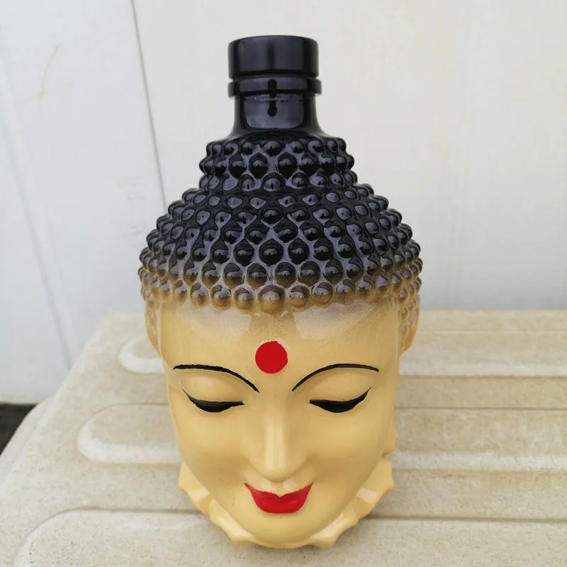 Высококачественная стеклянная бутылка 750 мл 500 мл с гальваническим покрытием, окрашенная голова Будды, виски, графин, бренди, бутылка