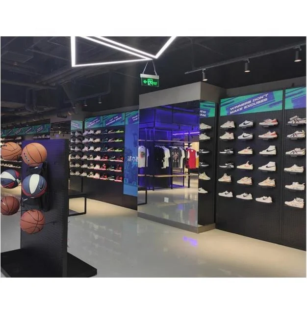 Лучшая цена на заказ Мужская Спортивная обувь магазин дизайн интерьера розничный металлическая настенная деревянная стойка для спортивной одежды