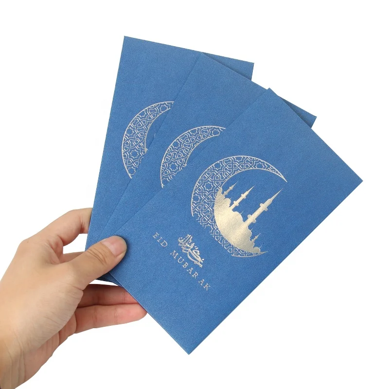 Мусульманский бумажный конверт для наличных денег Huiran 2023 серебряная фольга штамповки Eid Mubarak денежные конверты украшений
