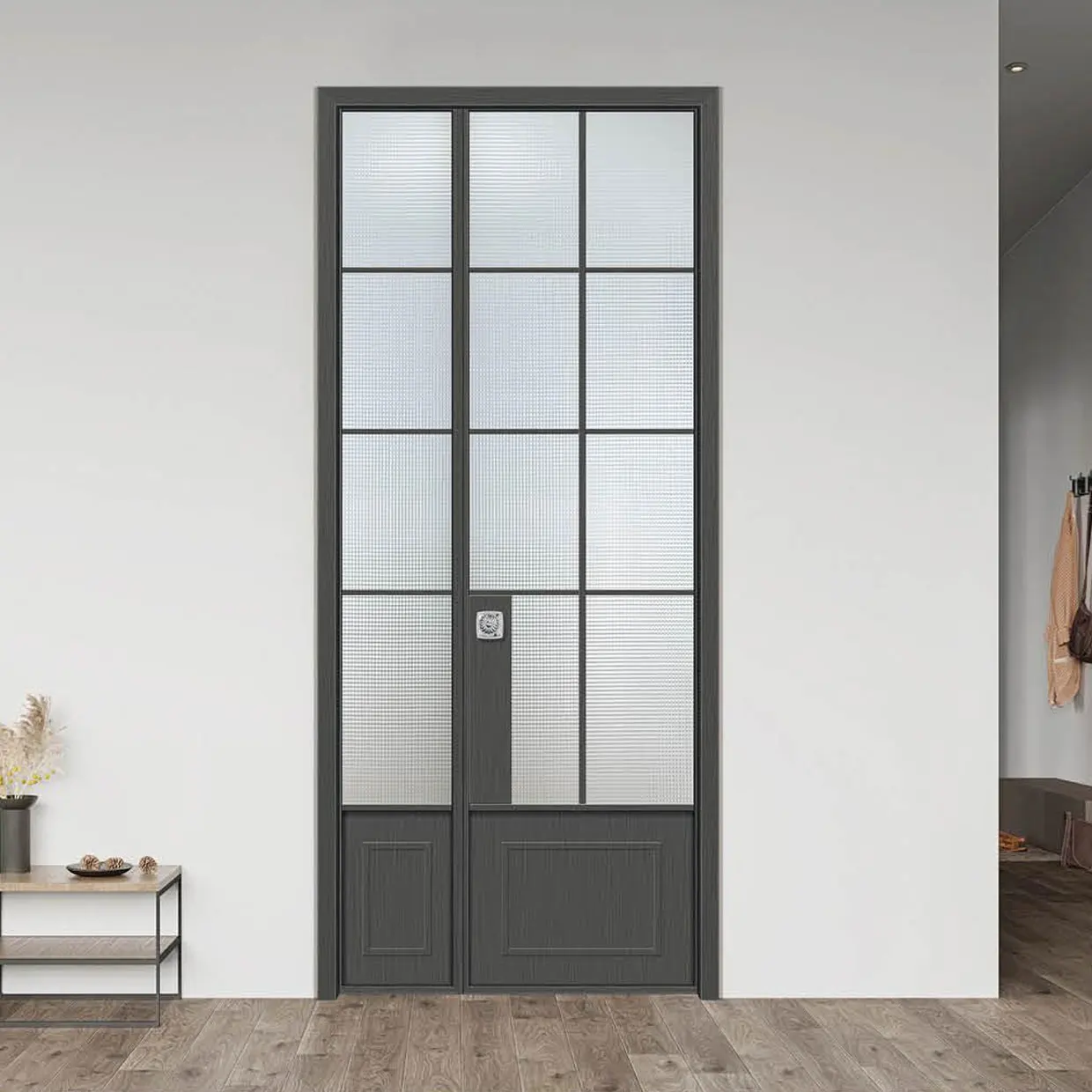 Во французском стиле черные двойные качели алюминиевые арочные внутренние стеклянные одностворчатые двери для интерьера дома
