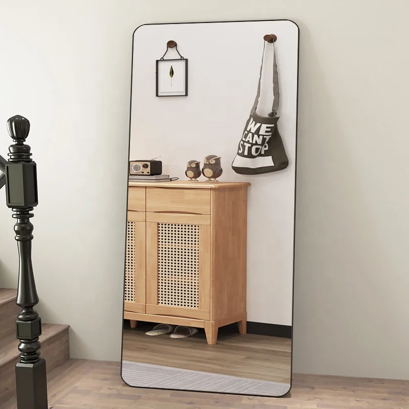 Aluminum Frame Large Size Floor Length Mirror Rectangular Round Corner Dressing