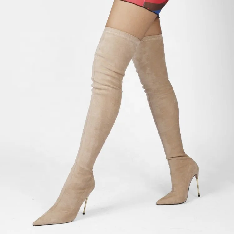 Женские сапоги до колена с острым носком большие размеры 35-44