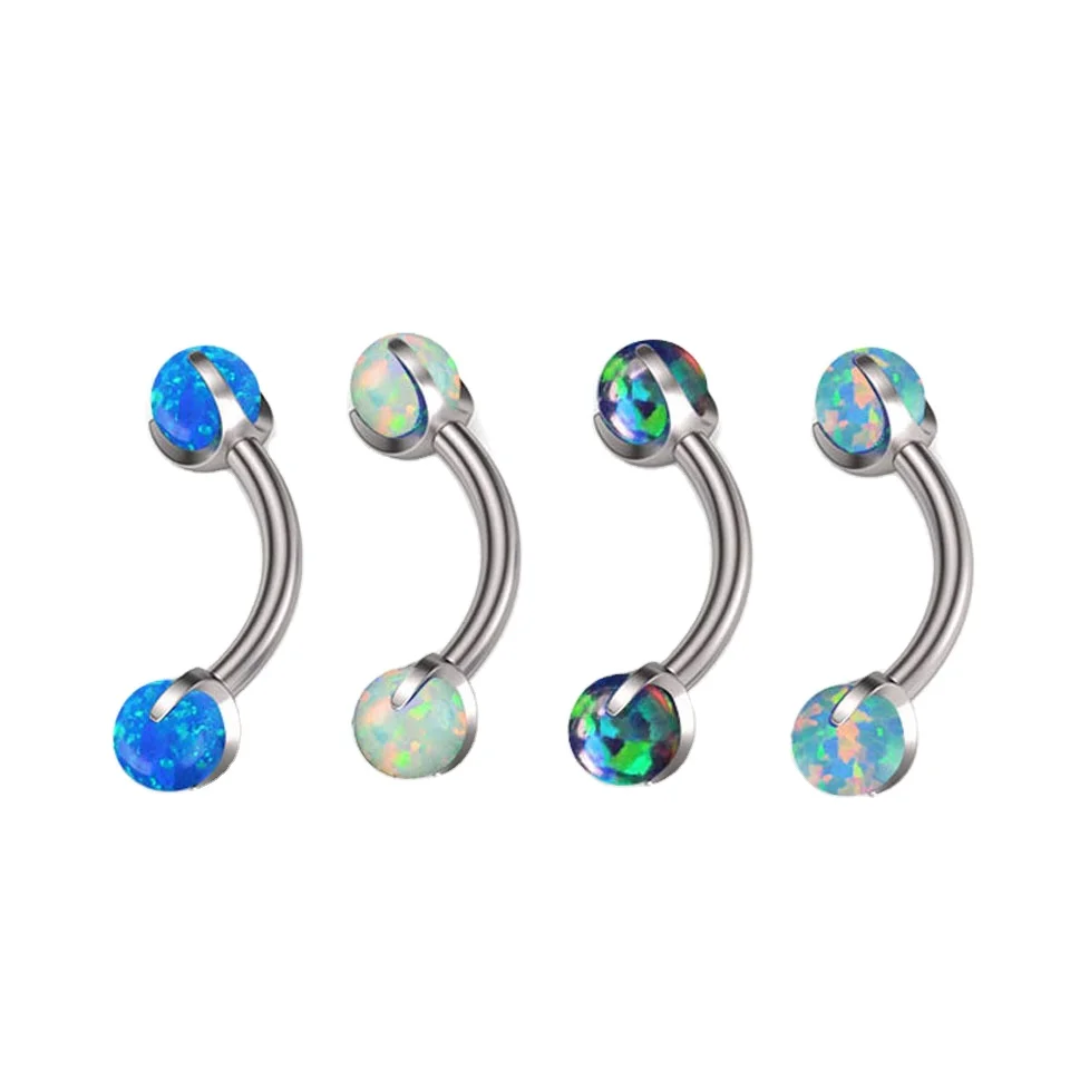 G23 ASTM F136 титановая внутренняя резьба 14 г опал Циркон изогнутый банан пупок кластер пупка Кольца для пирсинга