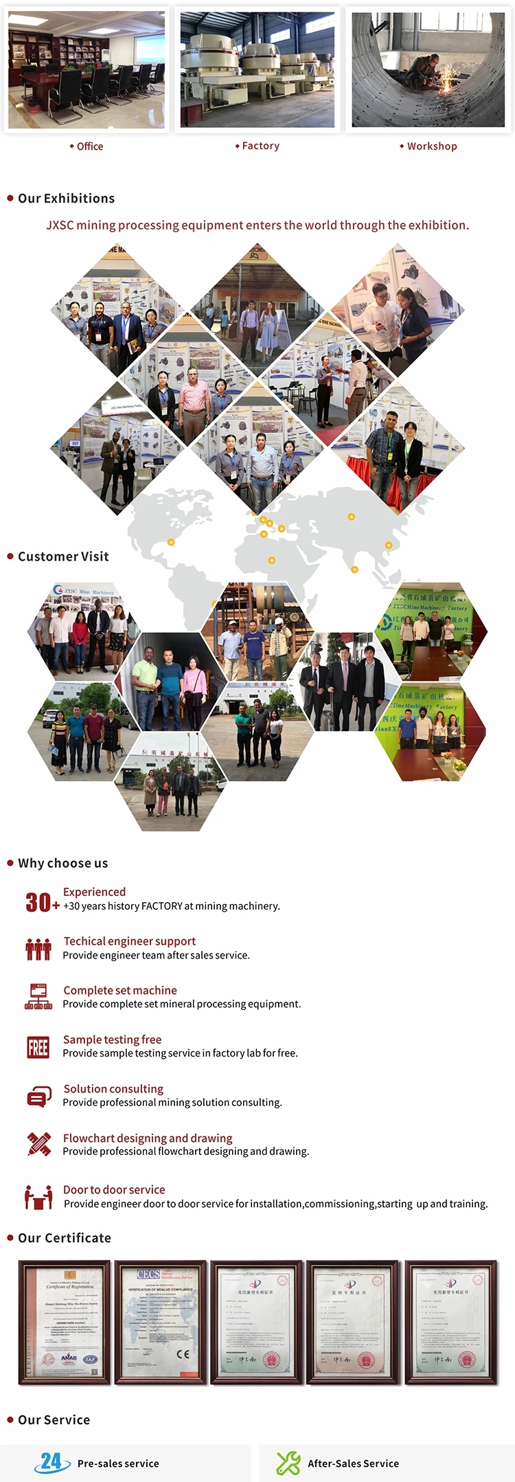 ●After-sales service: To establish long term friendship, we will regularly pay return visit to customers. Supplying technique, building design, instruction, installation and debugging for free.